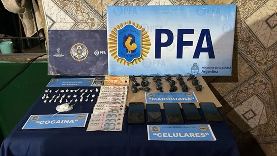 Durante el operativo, los agentes detuvieron a un hombre argentino, mayor de edad, que se encontraba en el lugar. Además de la detención, se logró incautar una importante cantidad de cocaína y marihuana, así como dinero en efectivo, presuntamente producto de la actividad delictiva. También se secuestraron varios teléfonos celulares que serán analizados para continuar con la investigación.