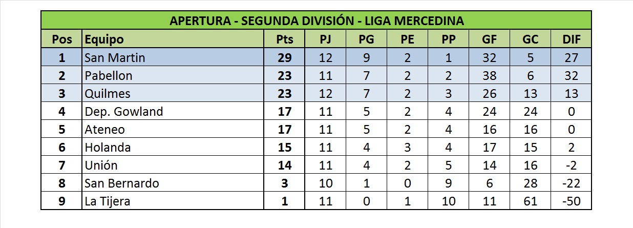 Los que buscan recortar la diferencia son Pabellón que goleó sin piedad a La Tijera y Quilmes que ganó su encuentro ante San Bernardo de San Andrés de Giles. Por otro lado, se dio la victoria de Ateneo ante Unión quedando libre el club Holanda.