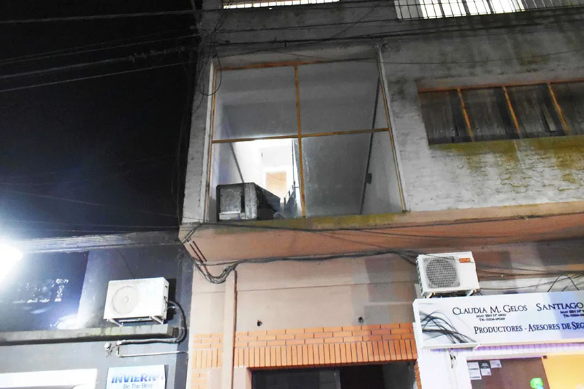 Gómez cayó pesadamente a la vereda de una altura estimada de alrededor de 6 ó 7 metros de altura, lo que le provocó heridas de gravedad.