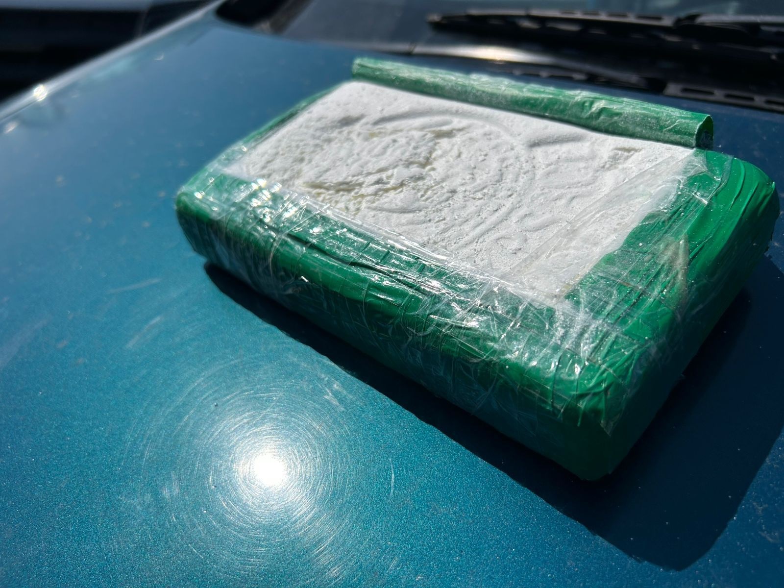 Durante la minuciosa inspección, los agentes encontraron varios envoltorios de cocaína escondidos, pero el hallazgo más significativo fue un ladrillo de clorhidrato de cocaína de 1,050 kg, que llevaba el distintivo logo de Versace, oculto en el baúl del vehículo.