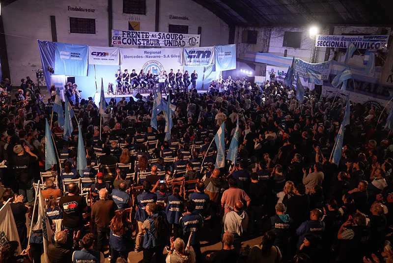 En un acto multitudinario en el Club Comunicaciones de la Ciudad de Mercedes, organizado por la CGT Regional Mercedes y las dos CTA, el lunes 29 de septiembre, los sindicatos se concentraron bajo la consigna “Frente al saqueo, construir unidad”, con actores importantes que integran la lista de Fuerza Patria y gran presencia de referentes políticos nacionales y provinciales.
