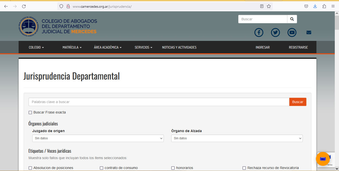 Invitamos a los matriculados a hacer uso del buscador, en el sitio web del Colegio, www.camercedes.org.ar, pestaña SERVICIOS, y en Ejercicio Profesional Jurisprudencia Departamental.