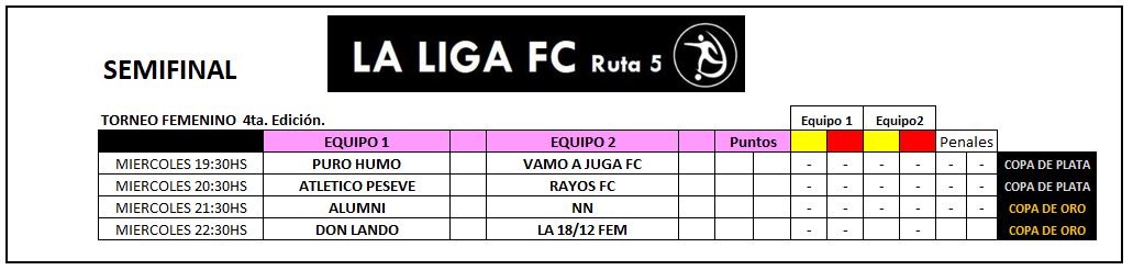 Con estos resultados, Don Lando, NN, Alumni y 18/12 Fem avanzaron a las semifinales de la Copa de Oro, mientras que Rayos FC, Vamos a Juga FC, Puro Humo y Atlético Peseve disputarán la Copa de Plata.