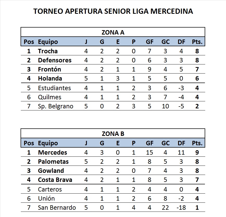 La Liga Mercedina de Fútbol retomó el Torneo Apertura Senior +40 con la disputa íntegra de la quinta fecha, que dejó resultados importantes en ambas zonas y reacomodó las posiciones de cara a la segunda mitad del campeonato.