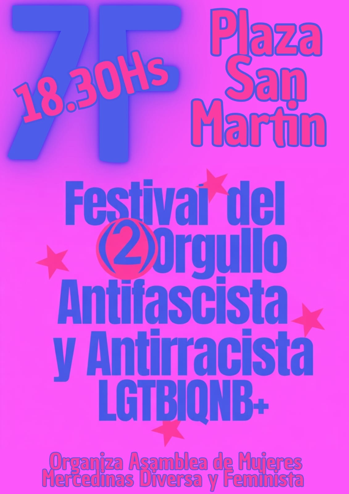 El viernes 7 de febrero a las 18:30 horas, en la Plaza San Martín de Mercedes, se realizará el Festival del Orgullo Antifascista, Antirracista y Anticolonialista LGBTTIQNB+, con la participación de artistas locales y organizaciones sociales.