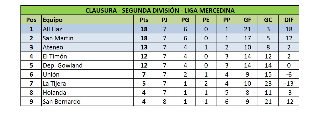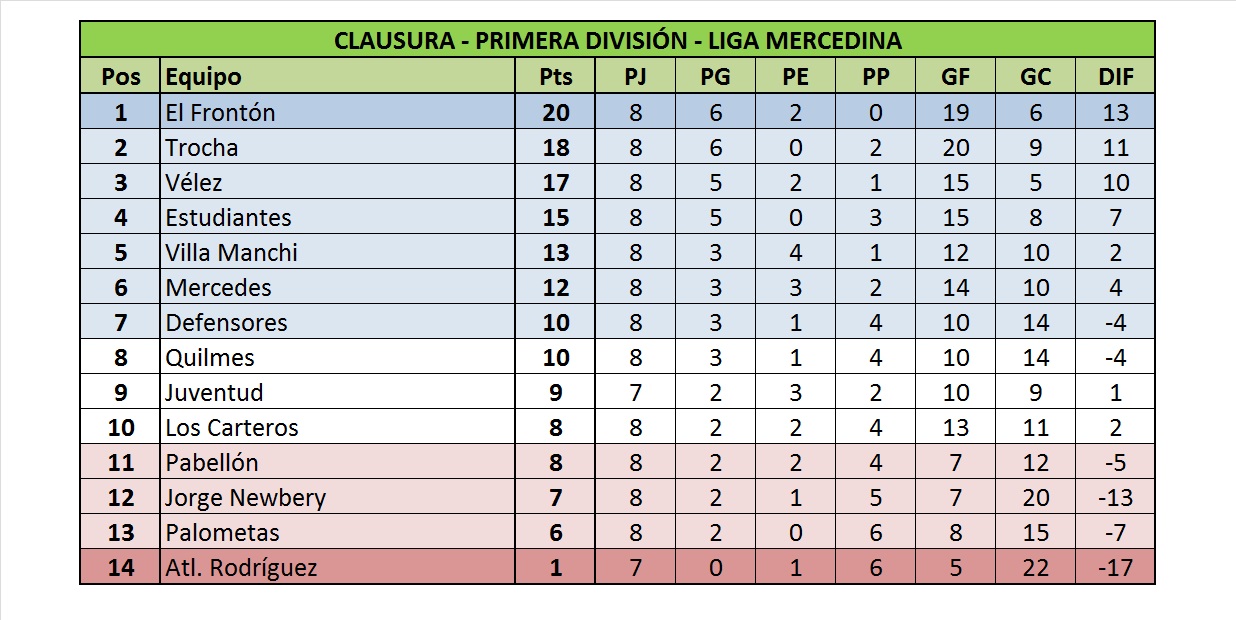 Además, el domingo por la tarde en el Estadio de la Liga Mercedina de Fútbol también se dio la victoria de Defensores, que le permite sumarse a lote de los siete mejores del torneo y de Carteros que le alcanza para salir de la zona de promoción.