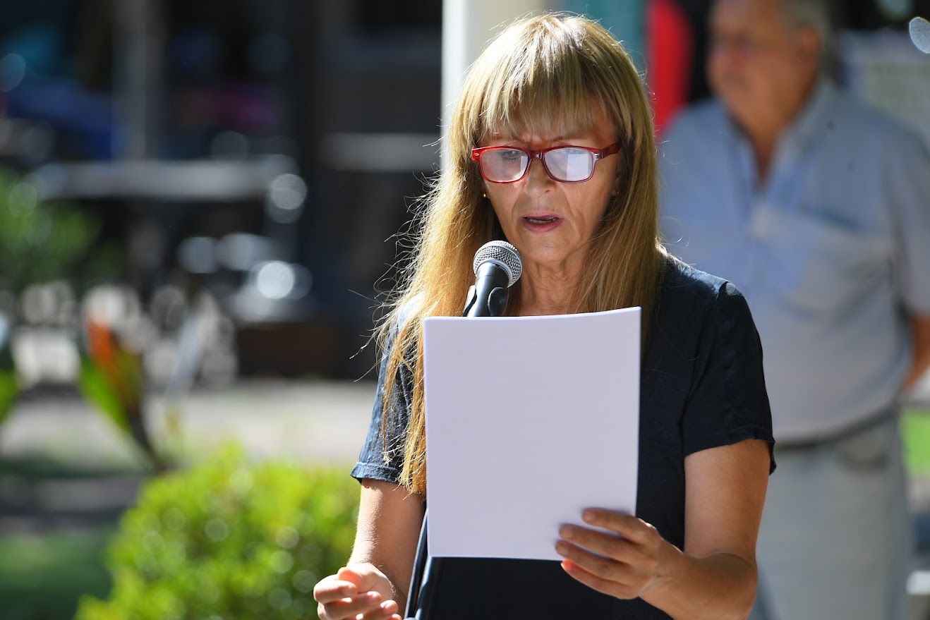 La conducción por parte de la Comisión estuvo a cargo de Claudia Révora, la lectura del documento central de Patricia Bojorge y el recuerdo de las víctimas en la voz de Silvia Fasce.
