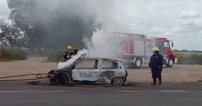 De acuerdo a la información del lugar, pasadas las tres de la tarde, los Bomberos Voluntarios fueron notificados de un incendio vehicular en jurisdicción del partido de Suipacha.