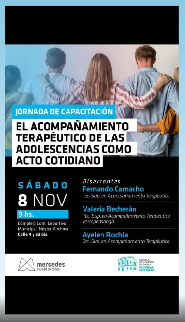 El próximo sábado 8 de noviembre, desde las 9 hs, el Complejo Comunitario Deportivo Municipal Néstor Kirchner será escenario de una jornada de capacitación centrada en “El Acompañamiento Terapéutico de las Adolescencias como Acto Cotidiano”. La propuesta, dirigida a profesionales y estudiantes del ámbito de la salud y la educación, busca fortalecer herramientas y enfoques para el abordaje integral de las juventudes.