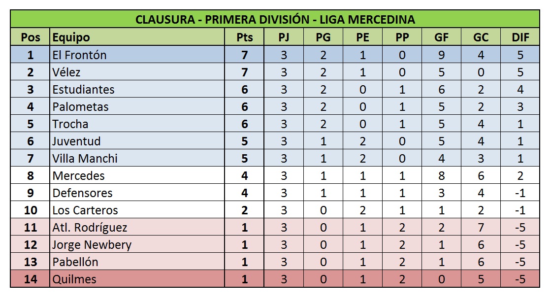 Con respecto a la división mayor, se disputaron partidos de la fecha 1, dándose las victorias de Palometas, Club Mercedes y El Frontón. Con estos puntos, los de San Andrés de Giles alcanzaron a Vélez Sarsfield en lo más alto de la tabla de posiciones.