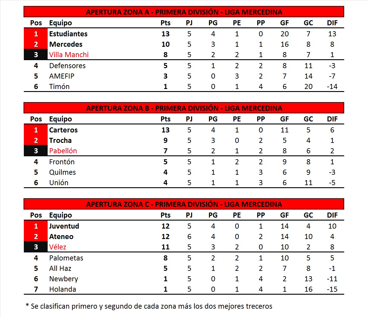 El Torneo Apertura de Primera División de la Liga Mercedina de Fútbol aprovechó este fin de semana para poner al día su calendario. Con la recuperación de varios encuentros pendientes, la tabla de posiciones sufrió modificaciones importantes, especialmente en una Zona C que se presenta como la más disputada del certamen.