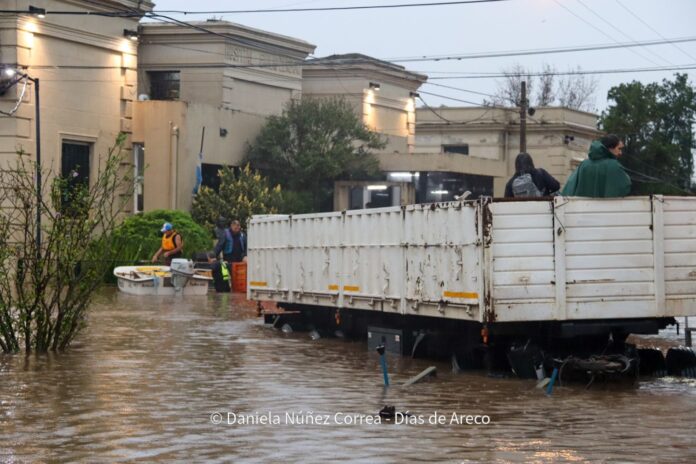 Desde ayer, la localidad de San Antonio de Areco enfrenta una de las peores inundaciones registradas en la región, con un acumulado de casi 400 mm de precipitaciones hasta las 10:30 de este sábado. El fenómeno ha sido comparado con la gran crecida de 2009.