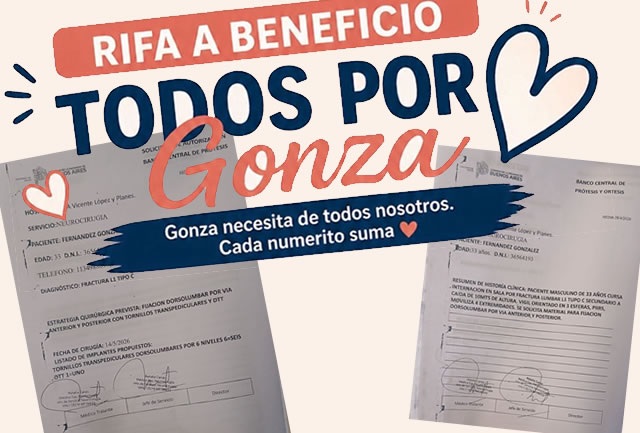 El procedimiento depende de la adquisición particular de un costoso equipamiento médico: prótesis y ortesis dorsolumbares con tornillos transpediculares para seis niveles y material DTT, cuyo valor asciende a 7 millones de pesos. Ante la imposibilidad de afrontar semejante suma, familiares y amigos iniciaron una campaña solidaria bajo el lema “Todos por Gonza”, que incluye rifas y donaciones directas.