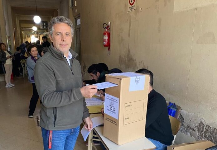 El candidato a concejal por la lista Potencia, Carlos Mosso, emitió su voto este domingo en la escuela Parroquial y asumió el rol de Fiscal General del espacio político durante toda la jornada electoral.