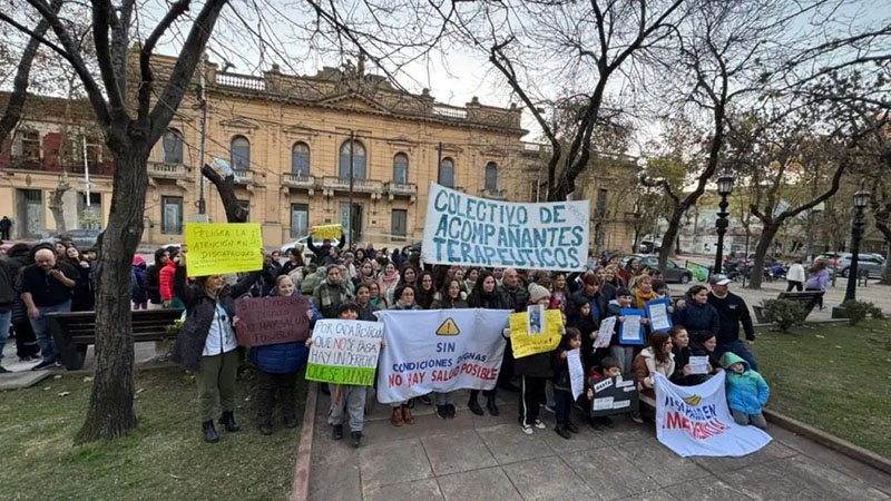 En la tarde de este miércoles 28 de mayo, en la plaza San Martín de Mercedes, el Colectivo de Acompañantes Terapéuticos convocó a una movilización por la difícil situación que atraviesa la discapacidad, los profesionales y las familias de personas en tratamientos. La movilización en Mercedes se dio en línea con la del hospital Garraham. El colectivo de acompañantes terapéuticos de la ciudad hizo la marcha el miércoles en conjunto con los de provincia de Buenos Aires.