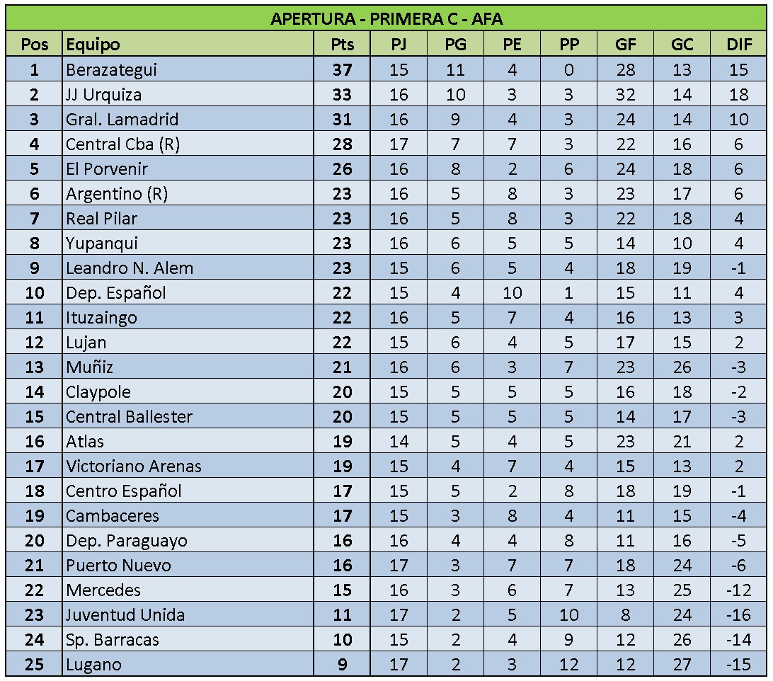 No obstante, antes se deberá cerrar la jornada 17 del torneo Apertura de Primera C, la cual tendrá su continuidad este domingo con otros cuatro partidos, otros dos el lunes y culminará el miércoles con el encuentro entre Central Ballester y Luján.