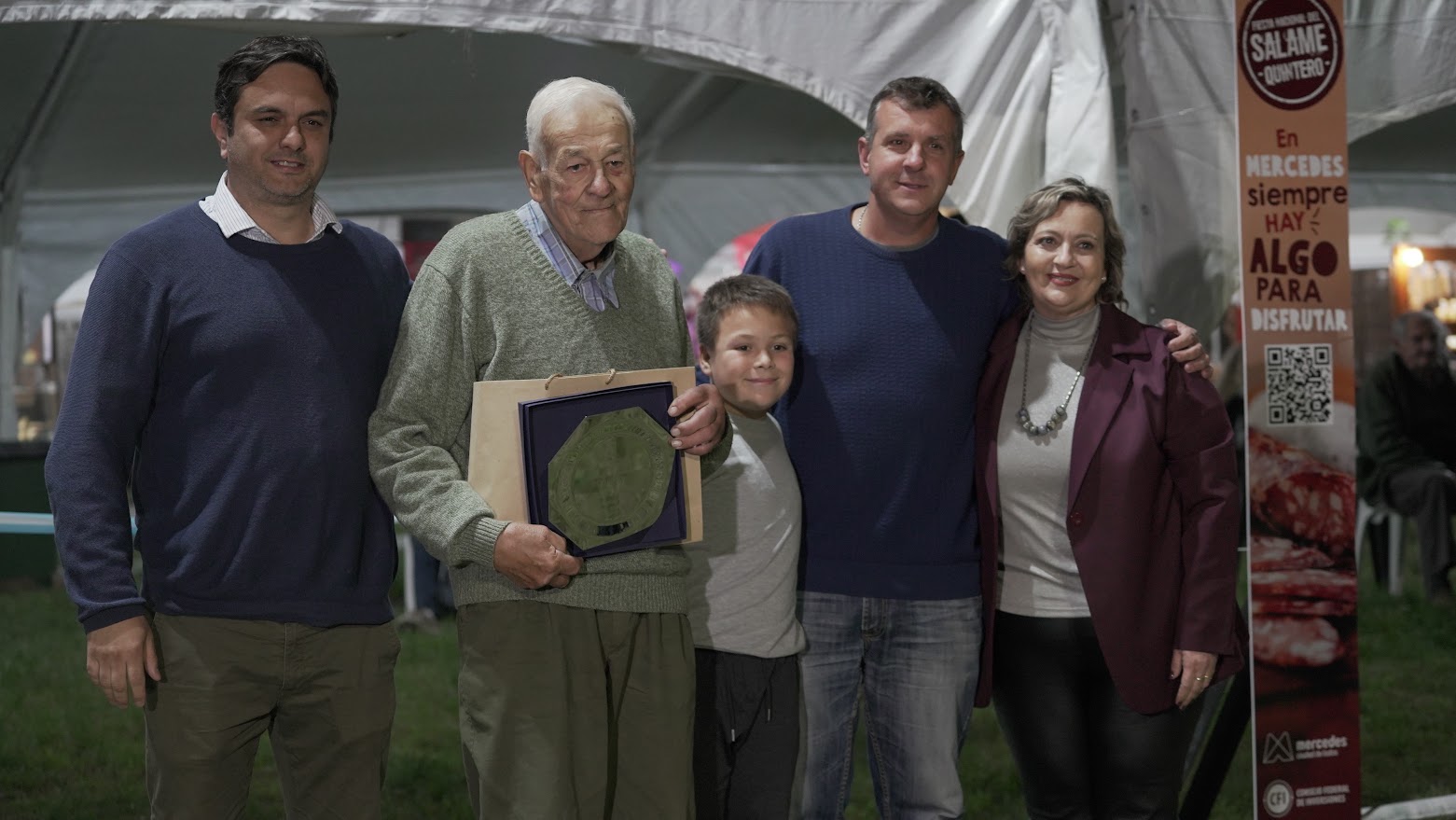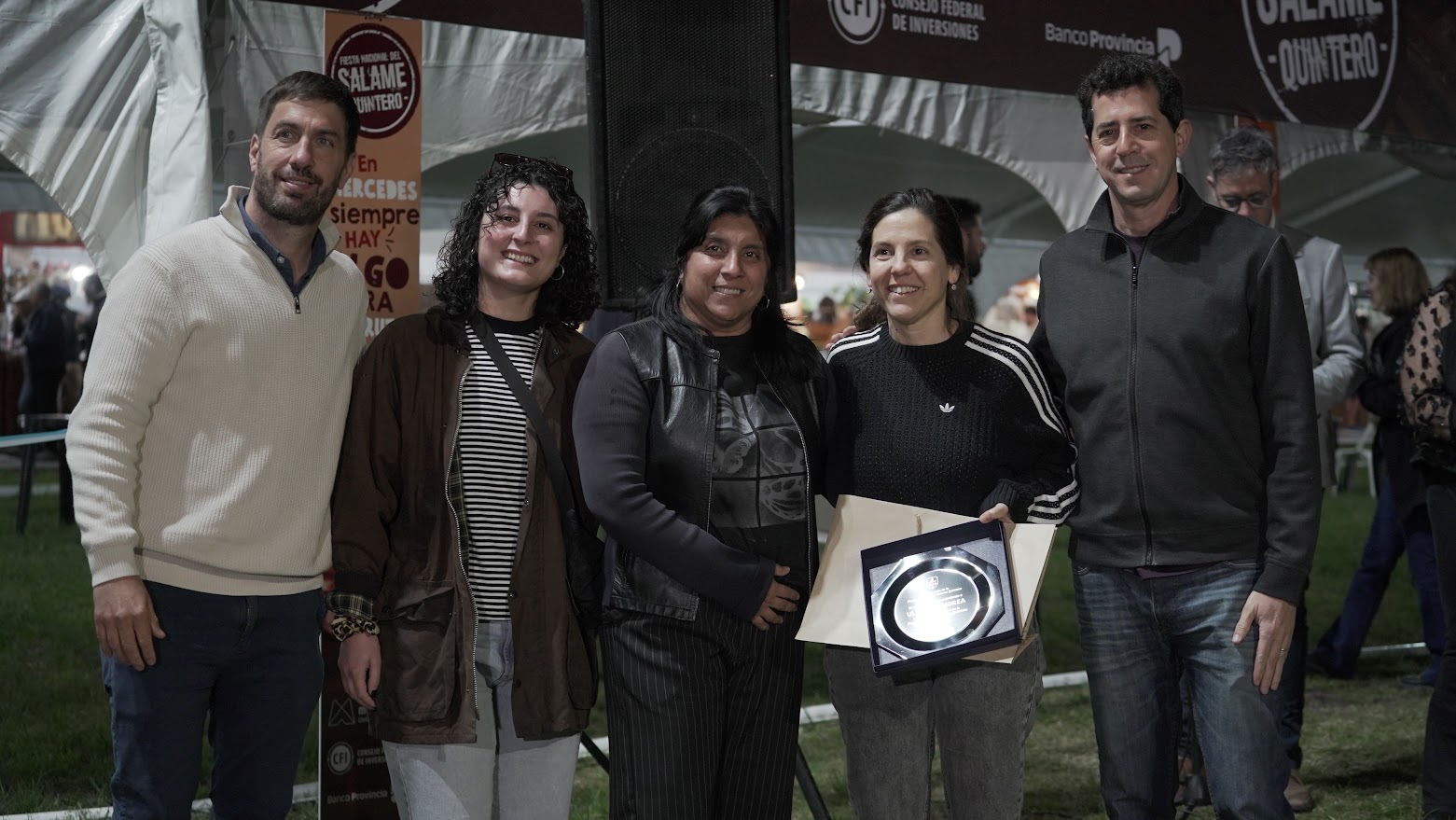 Las familias productoras fueron las grandes homenajeadas en la primera noche de la Fiesta Nacional del Salame Quintero • El intendente Ustarroz destacó el valor del encuentro, el trabajo y el traspaso de esta tradición de generación en generación, lo que la convierte en parte de la identidad de nuestro pueblo.