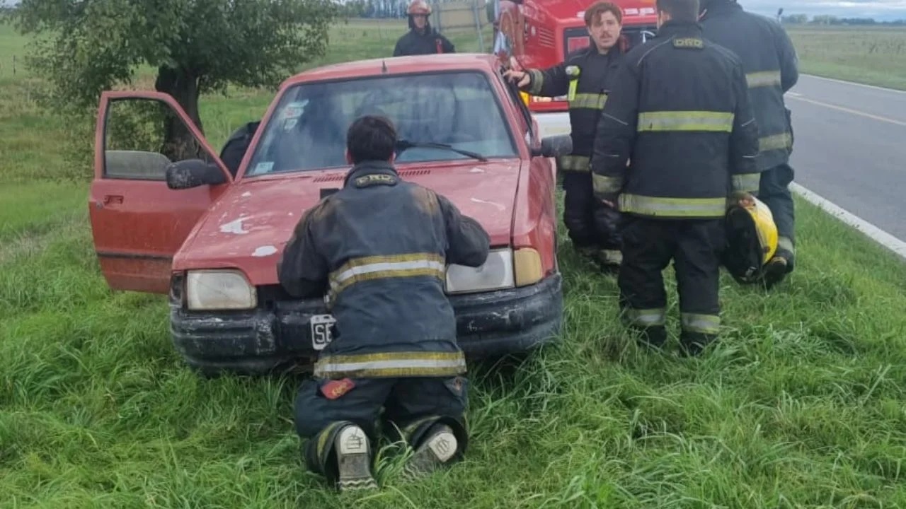 Bomberos Voluntarios controlaron rápidamente el fuego en un rodado hallado en la banquina del kilómetro 136,5; no hubo heridos.