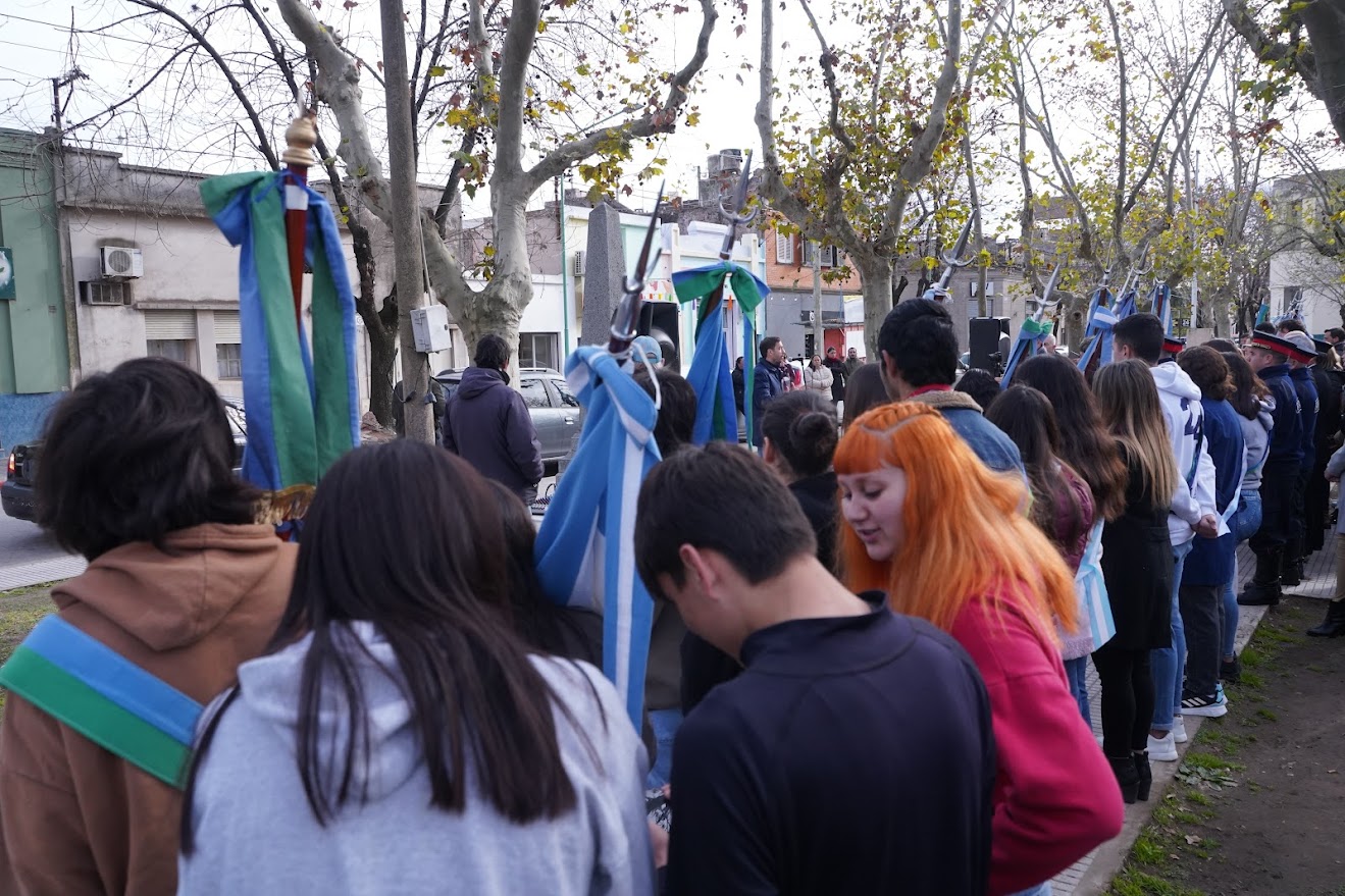 Participaron gran cantidad de instituciones, escuelas, vecinos, vecinas, integrantes del concejo deliberante, en un acto llevado adelante en Plaza Rivadavia donde se encuentra la pirámide que señaliza el origen de nuestra comunidad.