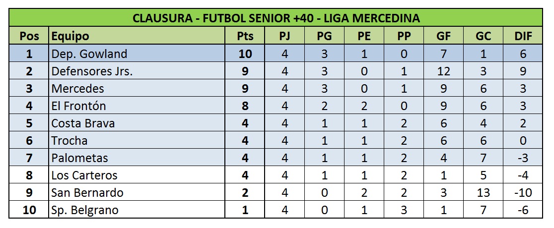 El Deportivo Gowland superó a Costa Brava y se subió a la cima • Mercedes le ganó a Defensores y ahora ambos son escoltas.