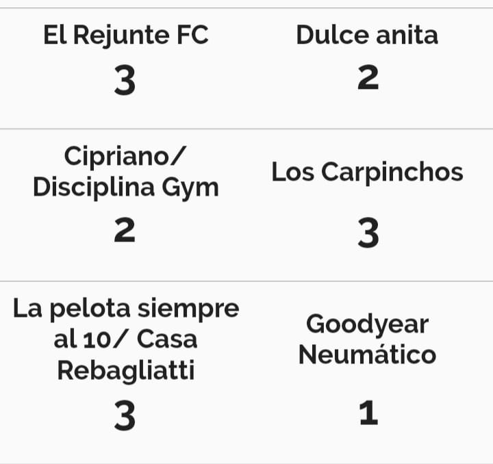 En esta jornada, se destacaron las victorias de Cerrajería Garbarino y La Pelota Siempre al 10 – Casa Rebagliatti, ambos líderes del torneo. De cerca lo siguen Los Carpinchos que tras superar a Cipriano – Disciplina Gym se consolido como el tercero de la tabla de posiciones.