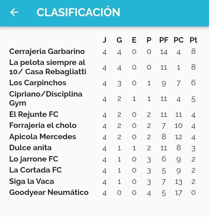 A continuación compartimos los resultados de la cuarta fecha y la tabla de posiciones hasta el momento.