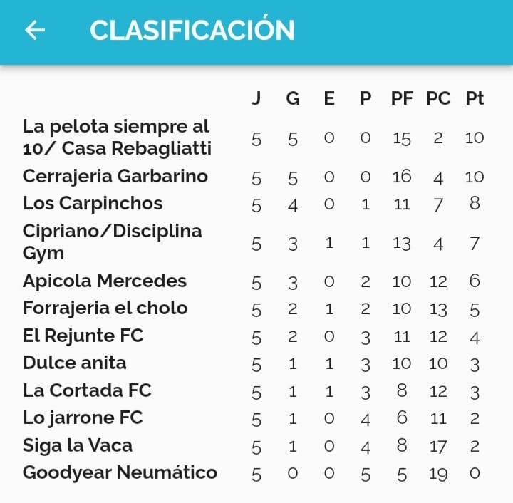 A continuación compartimos todos los resultados de la fecha 5 y la tabla de posiciones hasta el momento.