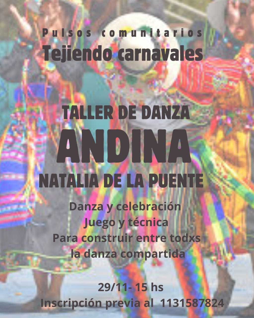 La comparsa “Que me lleve el carnaval” impulsa un encuentro de danza comunitaria que invita a explorar los principios del Huayno y la fuerza colectiva del Carnaval, de la mano de la bailarina y docente Natalia de la Puente.