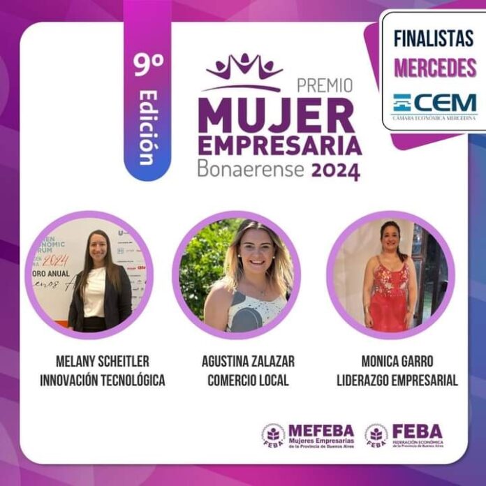 La Cámara Económica Mercedina (CEM) anunció con orgullo a las tres finalistas locales para el Premio Mujer Empresaria Bonaerense 2024, un reconocimiento que celebra el talento y esfuerzo de las empresarias de la provincia de Buenos Aires en diversas categorías.