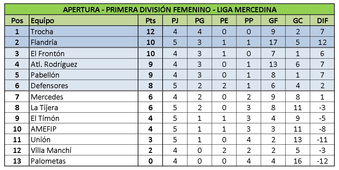 Durante el fin de semana se llevó a cabo la quinta fecha del torneo Apertura de Primera División para el fútbol femenino, el cual lleva la organización de la Liga Mercedina.