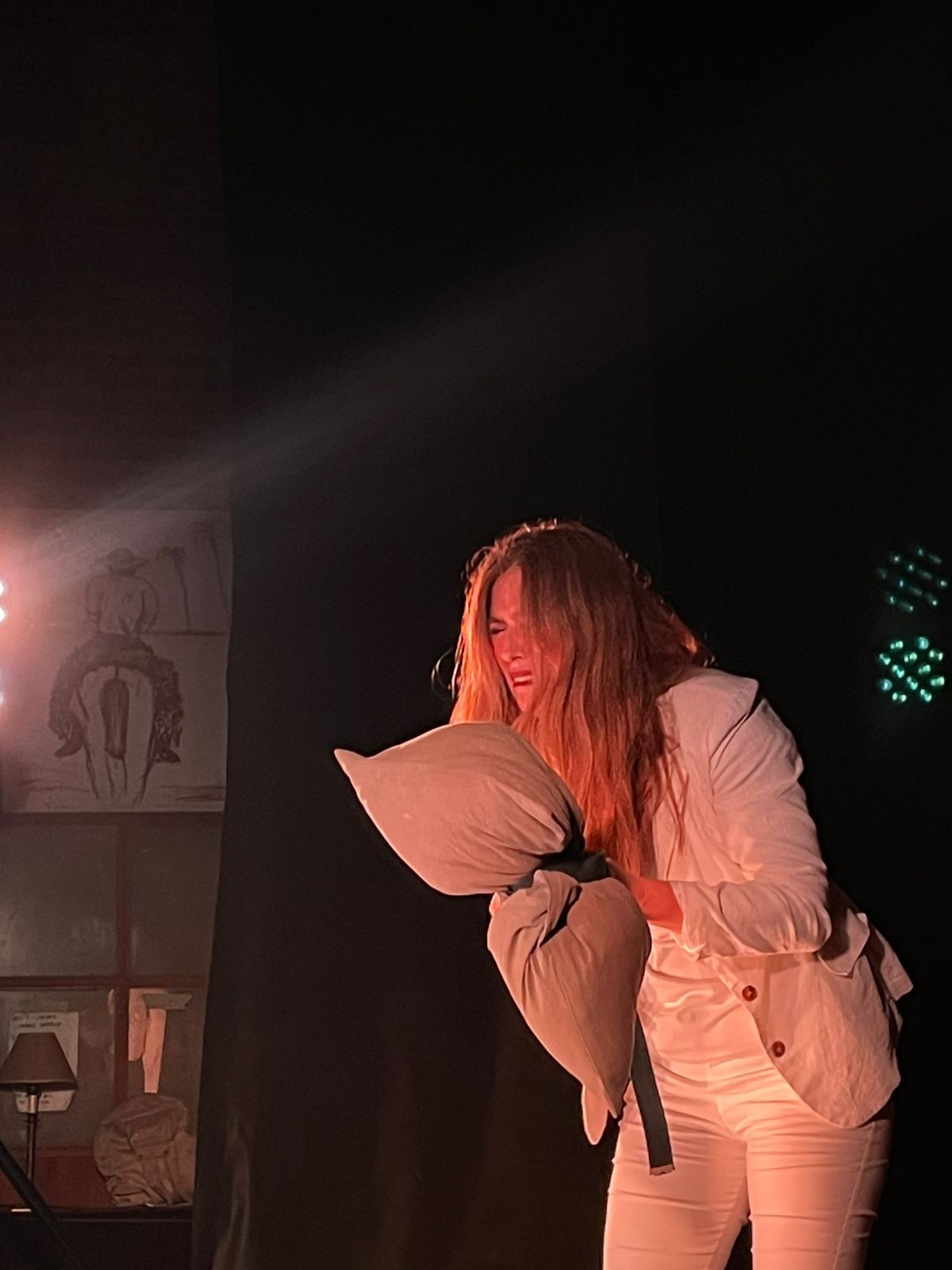 Lucila Matteucci ofreció una interpretación de gran sutileza y precisión expresiva. Su presencia escénica, siempre atenta al ritmo interno de la obra, mantuvo una tensión sostenida que atrapó al espectador, desde el silencio y la mirada. Con un dominio claro del “tempo” teatral y una naturalidad que evitó toda afectación, logró construir un personaje verosímil, lleno de matices y humanidad.