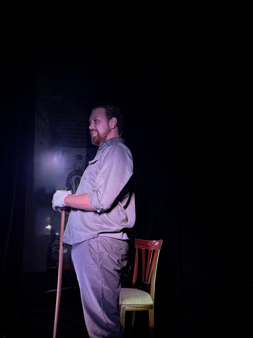 El joven debutante se presentó con una impronta escénica que conjugó energía y precisión, construyendo su personaje a partir de un uso del cuerpo tan expresivo como controlado. Su interpretación, desenvuelta y convincente, alcanzó un punto justo entre la comicidad y la verosimilitud. En el imaginario intercambio con su esposa, logró tender un hilo invisible con el espectador, de modo que sus gestos y ocurrencias encontraron una respuesta inmediata. Esa conexión genuina derivó en momentos de auténtica complicidad y humor compartido.