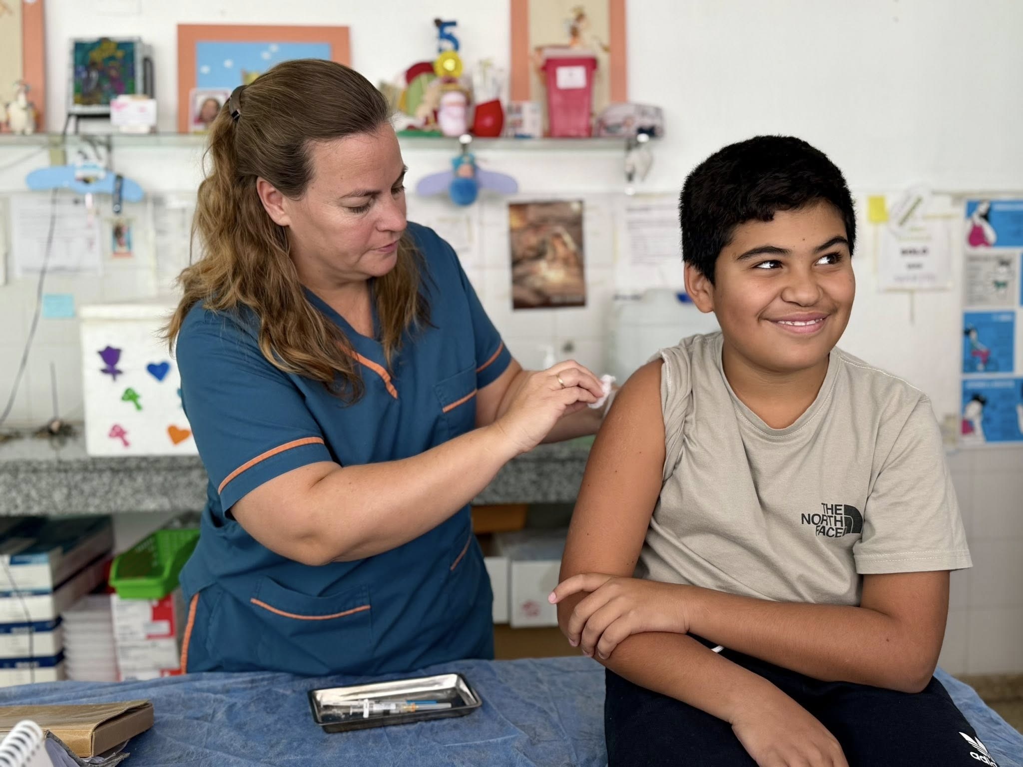 El esquema obligatorio contempla dos dosis iniciales a los 3 y 5 meses de vida, un refuerzo a los 15 meses y una dosis única a los 11 años. En la jornada, Ian —de 11 años— se acercó al vacunatorio para recibir la dosis correspondiente a su edad, mientras que Giovanni —de apenas 5 meses— avanzó en su esquema con una de las aplicaciones iniciales.