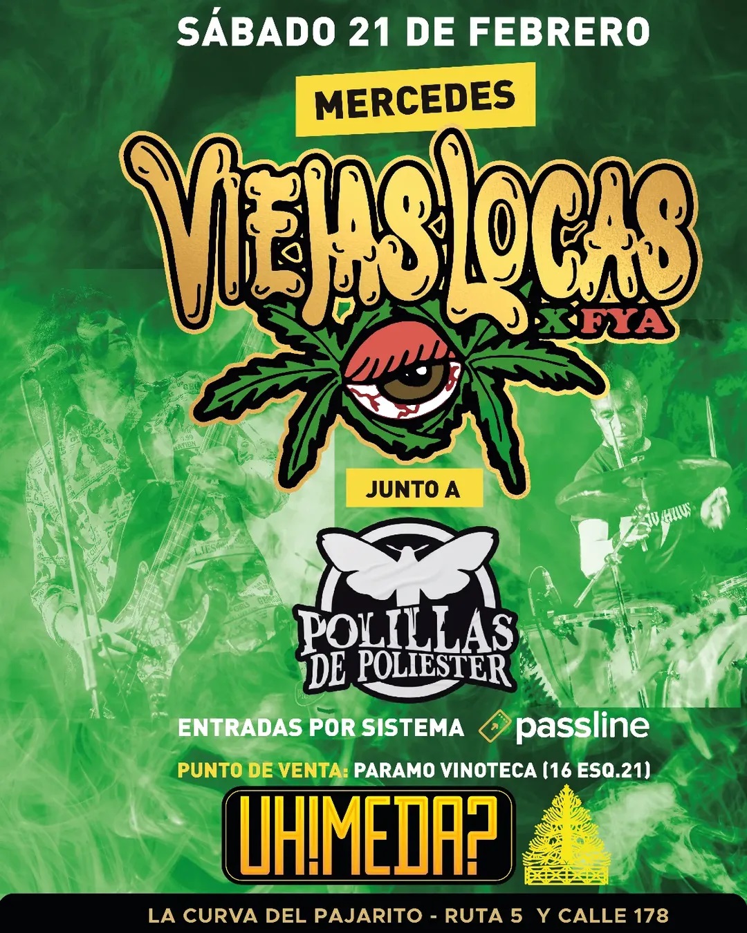 Recién llegada de su participación en el Cosquín Rock, la mística de Viejas Locas aterrizará en Mercedes este sábado 21 de febrero. El grupo se presentará en el espacio cultural Uh!Meda?, ubicado en La Curva del Pajarito (Ruta 5 y Calle 178), en lo que promete ser un repaso exhaustivo por los clásicos que marcaron a fuego la década del 90 y el sonido del rock nacional.